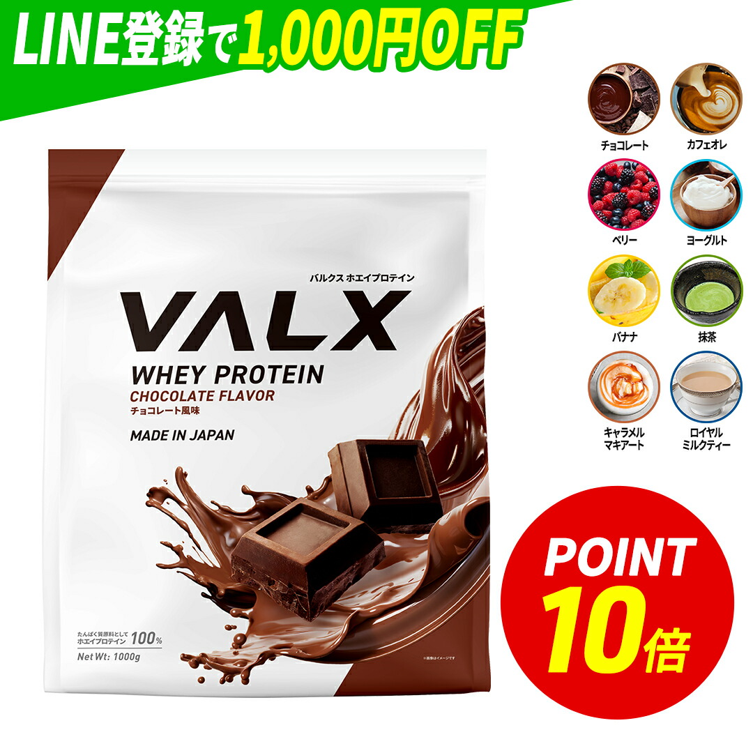 【ポイント10倍 3/4 20:00-3/11 01:59】 [期間限定 LINE登録で1,000円OFF] VALX ホエイプロテイン WPC 1kg 選べる8種フレーバー 国内生産 山本義徳 チョコレート ベリー ヨーグルト カフェオレ バナナ 抹茶 プロテイン タンパク質 筋トレ ダイエット 美容 置き換え 女性