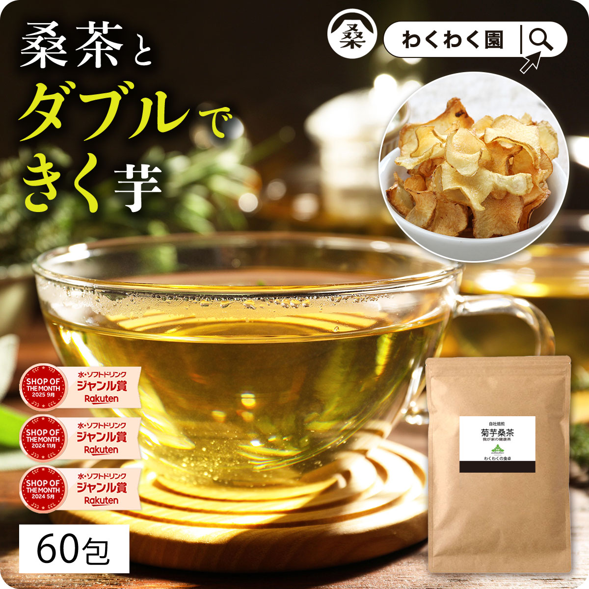 【クーポンで1,980円】( 菊芋 桑茶 60包 ) 送料無料 わくわく園 おいしい 国産 桑の葉茶 ティーバッグ ティーパック 九州産 菊芋茶 桑の葉 茶 健康茶 食物繊維 イヌリン キクイモ ノンカフェイン 痩活 制限 腸活