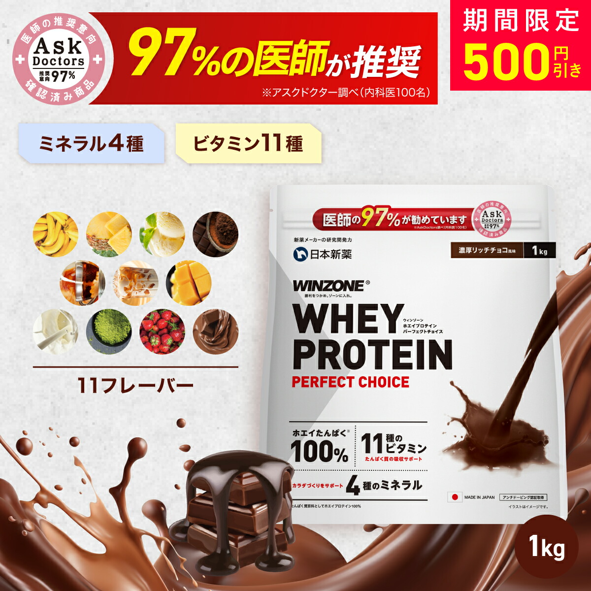 【19日20時から500円OFF!】プロテイン ホエイプロテイン ウィンゾーン パーフェクトチョイス 1kg 日本新薬 WPC タンパク質 BCAA EAA ビタミン ミネラル 選べる風味 WINZONE シェイカーありなし 男性 女性 男女兼用 筋トレ 置き換え ダイエット 美容