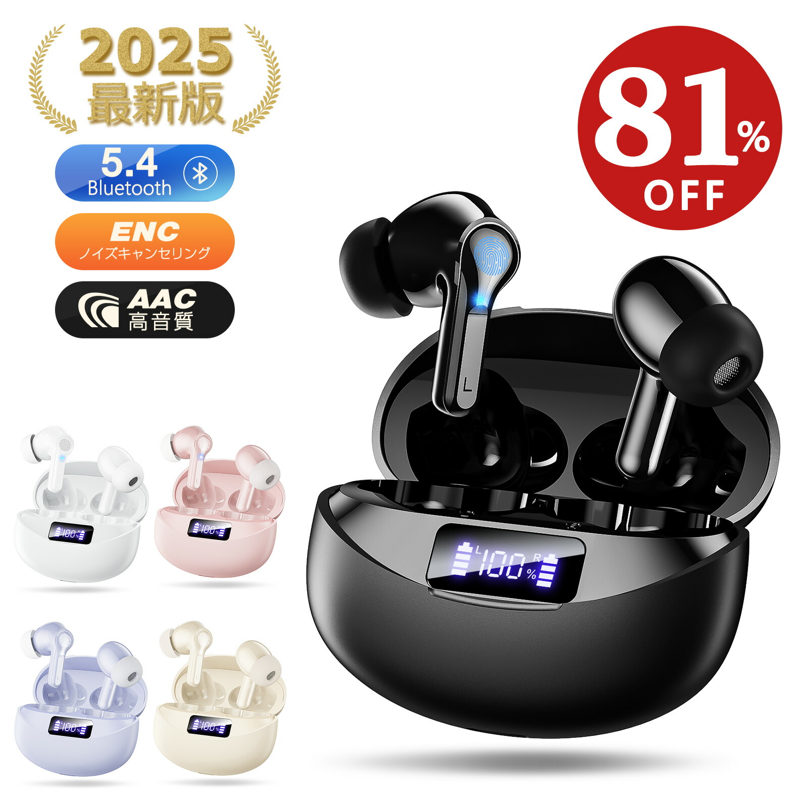 楽天ランキング1位★\81%OFF&P5倍→2,099円/2024年間MVP ワイヤレスイヤホン bluetoothイヤホン 残量表示 Bluetooth5.4 ENC ノイズキャンセリング 自動ペアリング 36H連続再生 Type‐C急速充電 IPX7防水 AAC対応 マイク内蔵 iPhone/Android 旅行